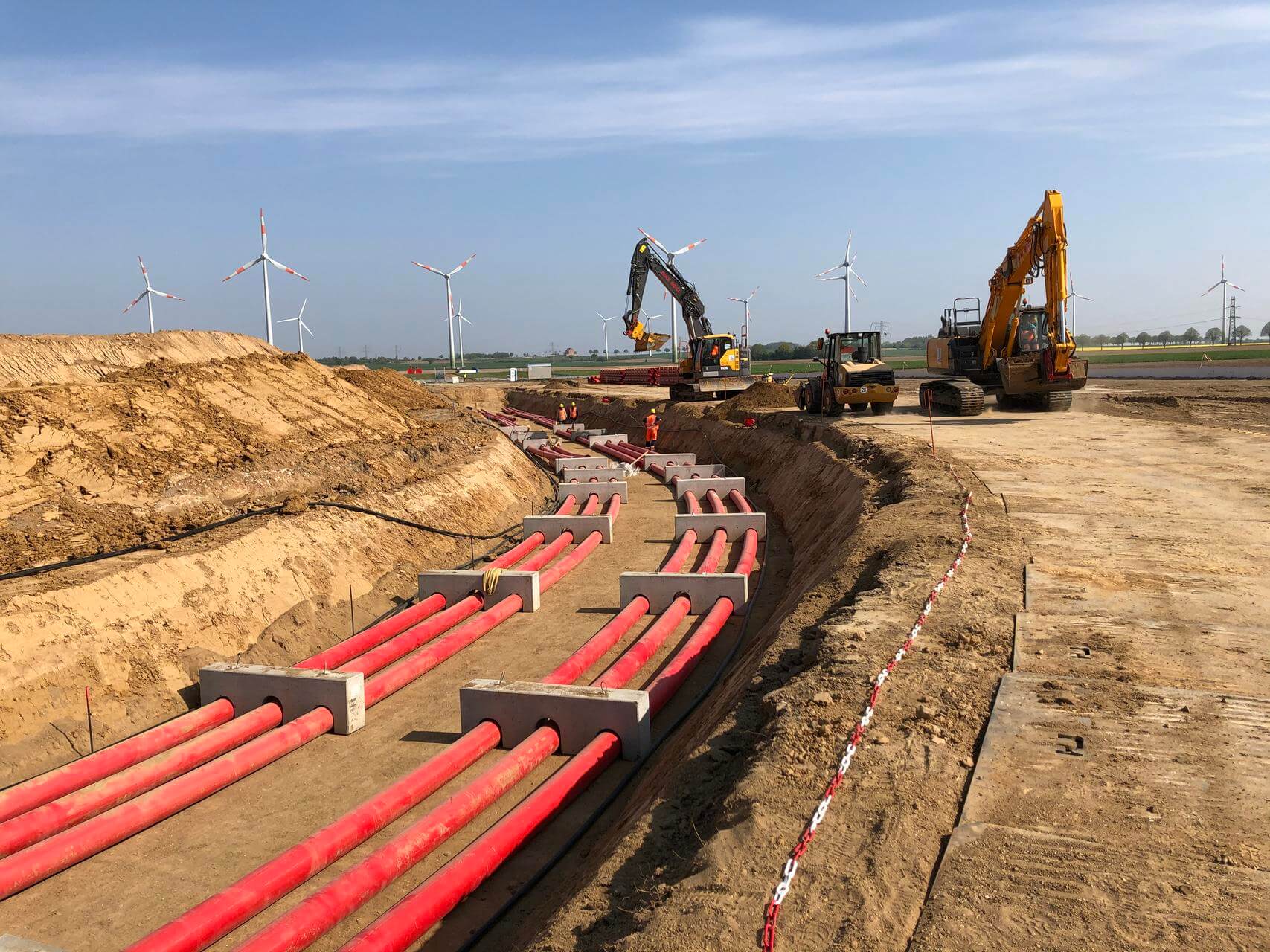 At the beginning of July, the network operator TenneT started soil investigations at around 100 points between Büsum and Heide to test the stability and conductivity of the subsurface for the approximately 15-kilometre-long land cables of the offshore grid connections LanWin2 and LanWin3. The investigations are a prerequisite for the approval procedure, which is scheduled to begin in spring 2026. Construction is then planned to start in 2028.