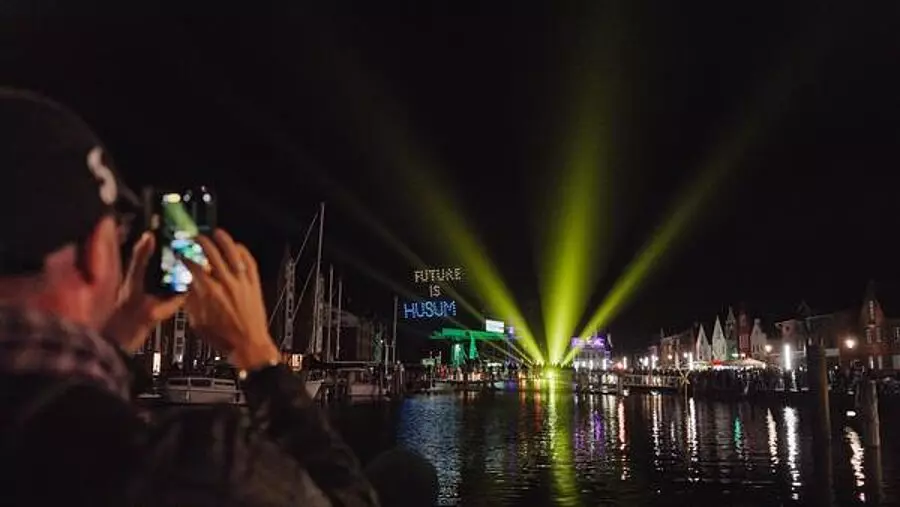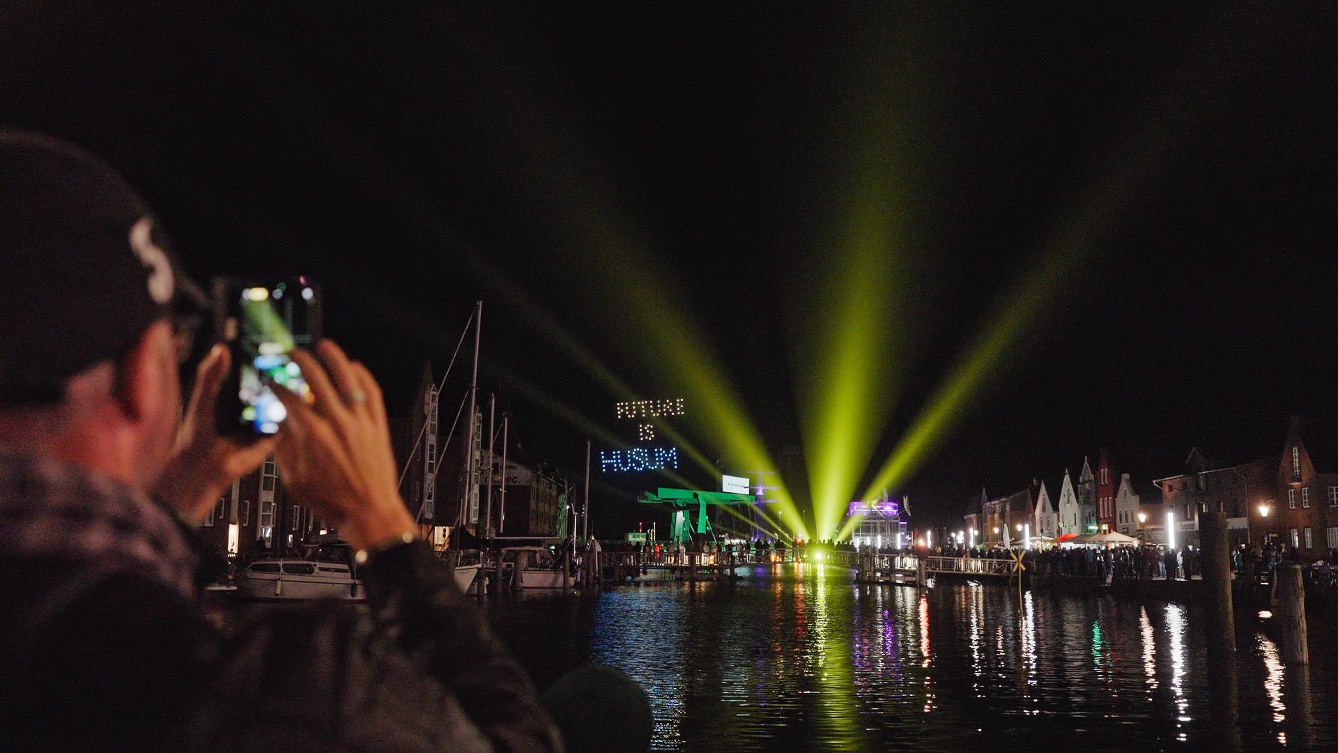 At the opening of the trade fair: impressive drone light show over the harbour.